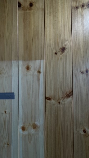 パインの無垢板張りの壁とシナ合板の天井で囲んだ